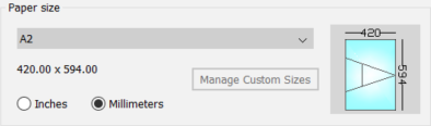ダイアログ上のイメージは選択されたペーパーサイズ上の図面位置と回転を反映しています。
