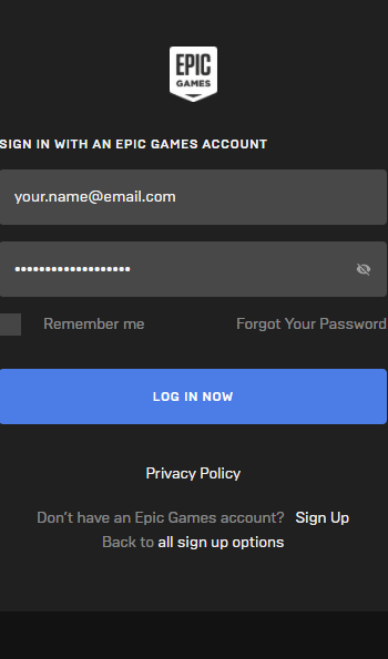 まだEpic Gamesのアカウントをお持ちでない方は、サインアップをクリックし、必要な情報をすべて入力してCreate Accountをクリックしてください。