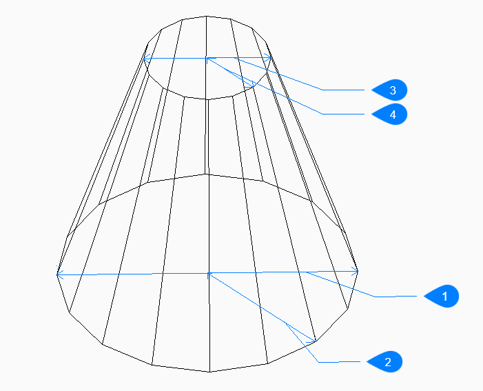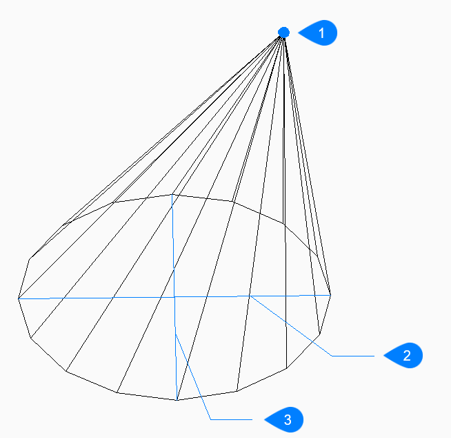 - 円錐の曲面をシミュレートするための等分割線の数を指定します。デフォルト値は16です。