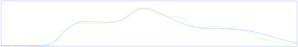 自動縦断線形は、地形線との標高差が垂直公差パラメータの値を超えないように計算されますが、デフォルトは0.1に設定されています。