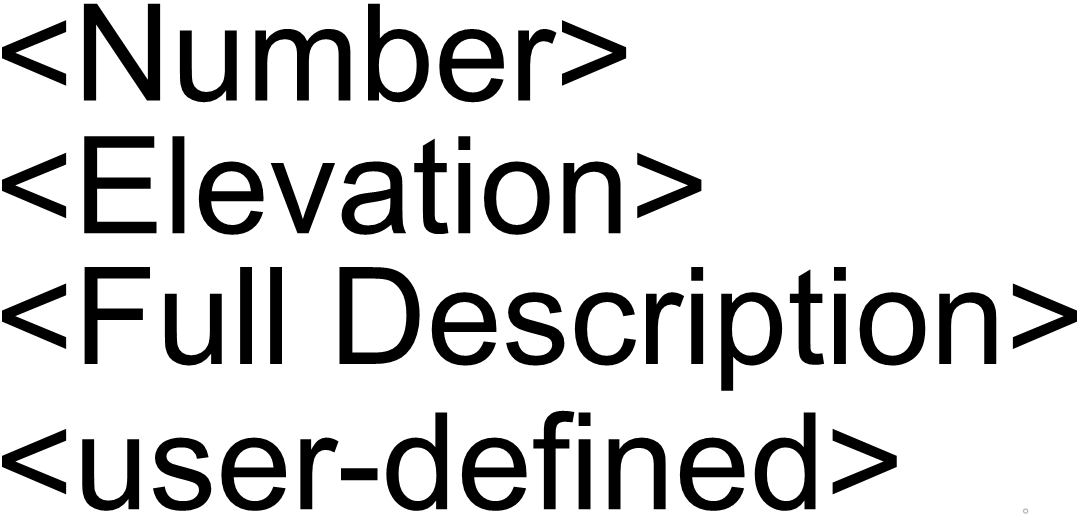 ブロックエディターを使用して、土木ポイントの記号ブロックに新しいカスタム属性を追加します。新しい属性を追加するには、山括弧(<ユーザー定義>)の中に属性キーを記述します。属性キーは、テキストまたは属性定義として記述することができます。