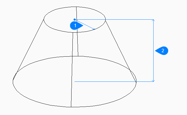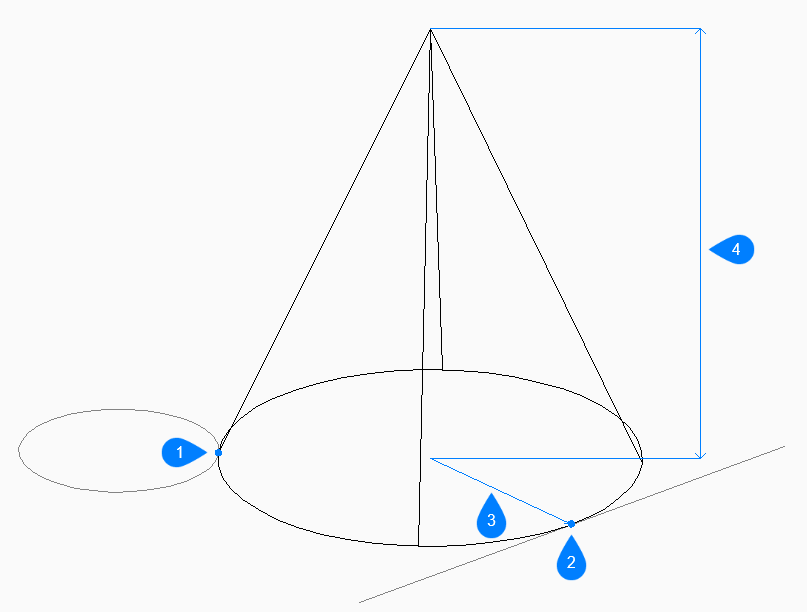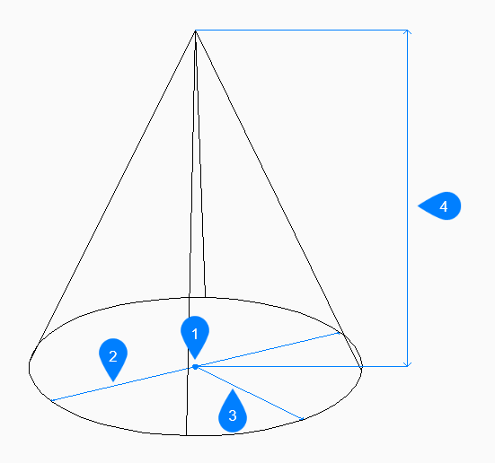 - 軸の端点を指定して3D空間での円錐の高さと方向を定義します。もう一方の軸の端点には底面の中心が使われます。
