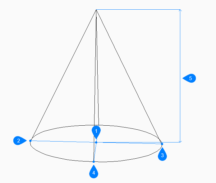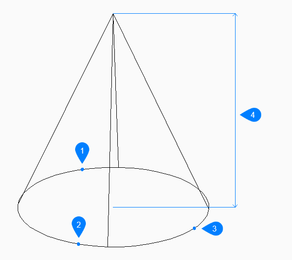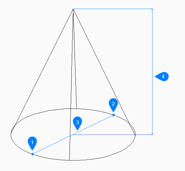 - 底面の円周上の2点を指定して、円錐の作成を開始できます。