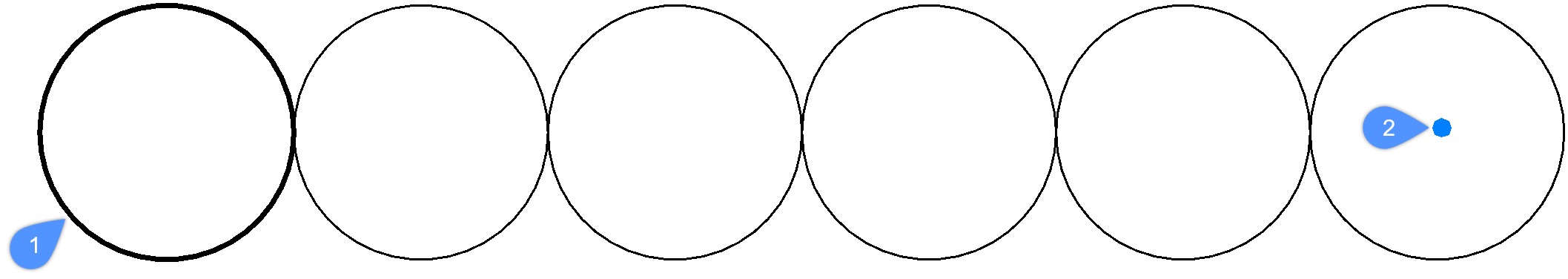 - 分割の終点(2)とコピーの数に基づいて、元の図形(1)のコピーを多数作成します。
