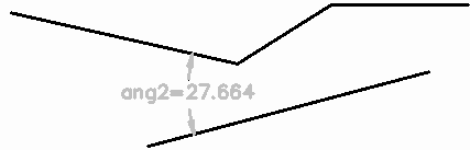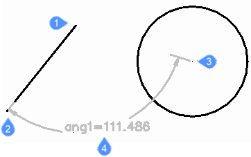 2本の直線間または直線ポリラインセグメント間の角度を拘束します。また、円弧、ポリライン円弧、任意の3つの拘束点の角度を拘束します。