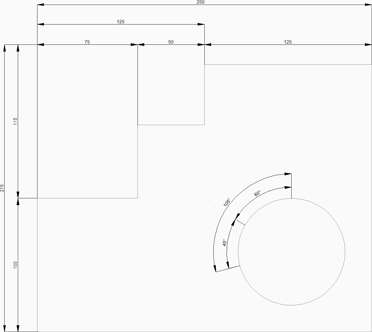 直線寸法と角度寸法の場合、各並列寸法の1本目の補助線が、1つ前の寸法の1本目の補助線と一致します。