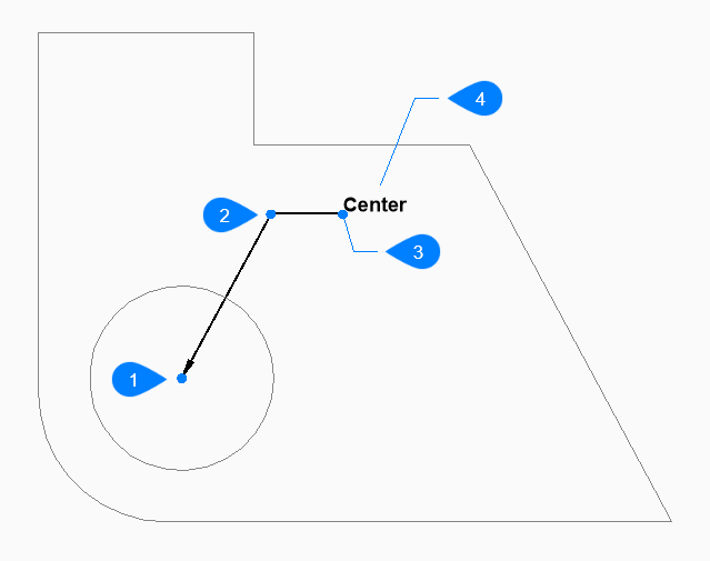 点のシーケンスを指定して引出線を作成します。引出線は、現在の寸法スタイルに基づきます。オプションを選択して、引出線の形式や注釈を指定することもできます。