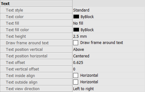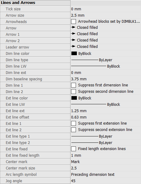 - Standard:「Standard」という名前の寸法スタイルの寸法設定を一覧表示します。