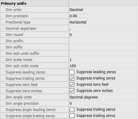 注: 副単位が1単位未満の距離寸法を表示するには、「先頭のゼロを省略」を「はい」に設定してください。