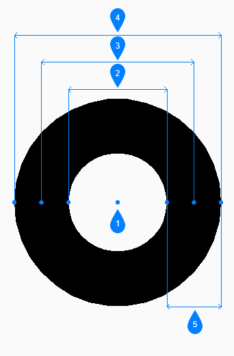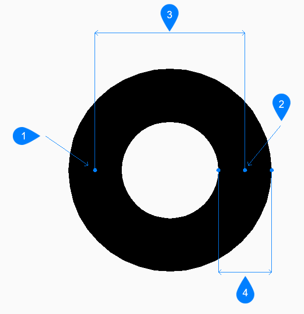 内径、外径、中心、幅などのオプションを組み合わせ、ドーナツの形状をした閉じたポリラインを作成します。