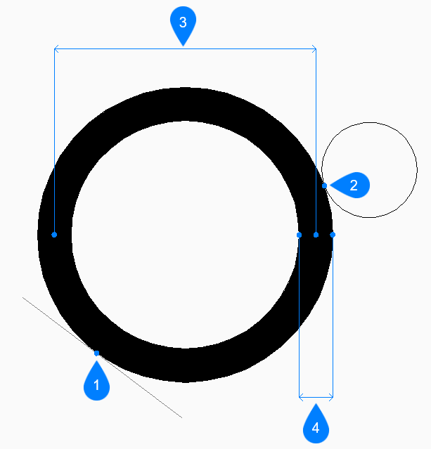 - 最初の図形で接点を選択してドーナツの作成を開始できます。