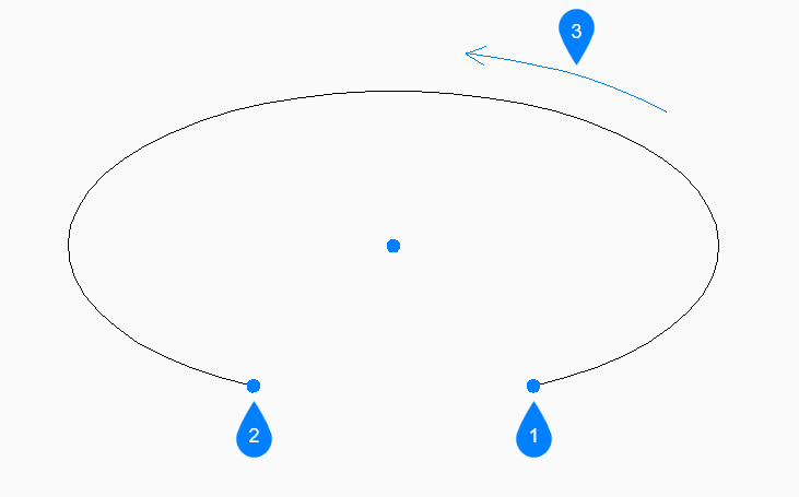 - 楕円軸の1番目と2番目の端点、および軸の半径を指定して、楕円弧の作成を開始できます。