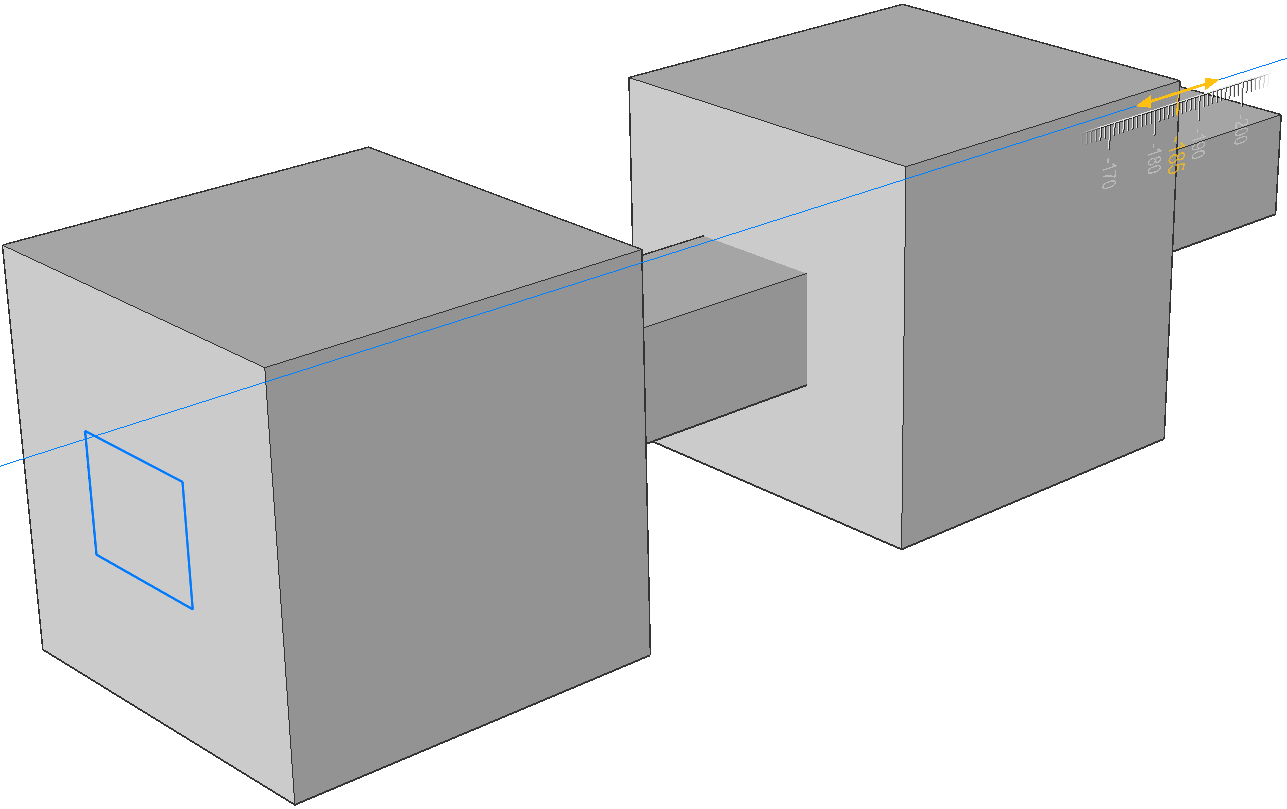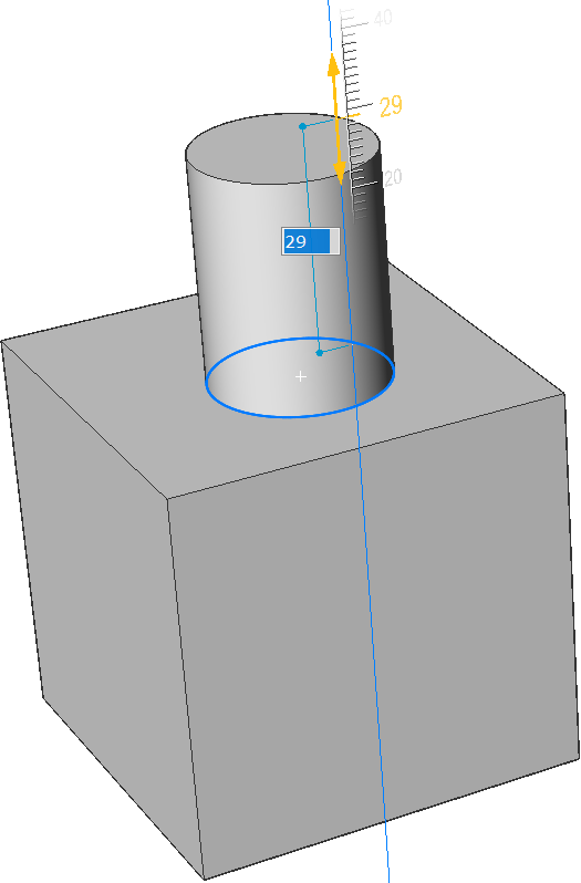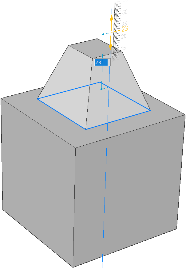 - 押し出しの高さを設定することができます。押し出しの高さは、ソース図形に対して垂直に測定されます。注: 高さは、マニピュレータを使ってダイナミックに指定するか、距離の値を入力して指定します。