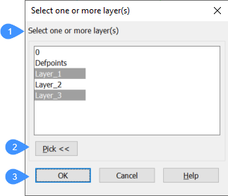 1つ以上の画層を選択ダイアログボックスが開き、削除する1つ以上の画層を選択することができます。