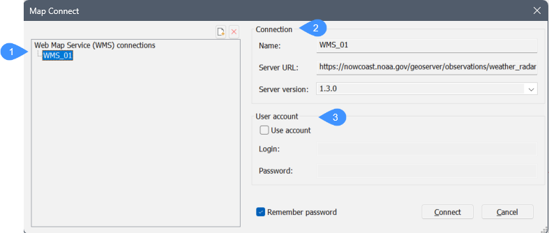 Webマップサービス(WMS)の接続を行うことができます。