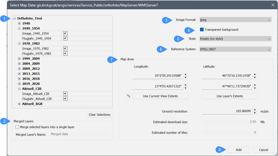 Webマップサービスに接続すると、以下のダイアログボックスが表示されます。