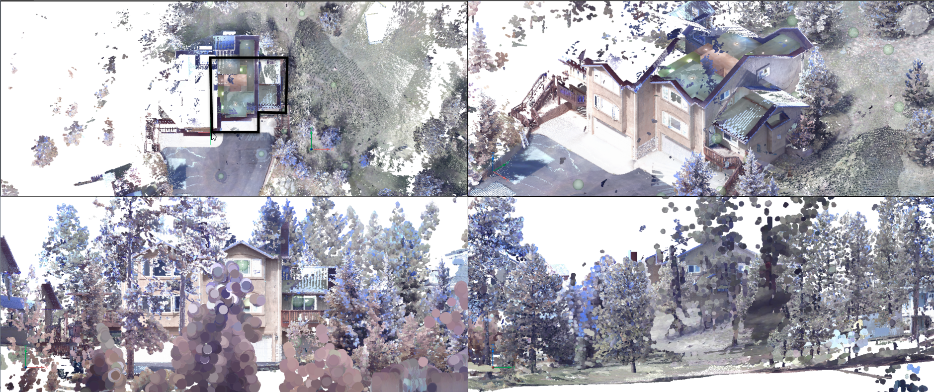 アタッチした点群にクロップ境界を作成し、プリズム形または円筒形のボリュームの内側または外側の点群の一部のみを表示します。