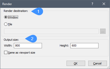 レンダリングダイアログボックスが開き、カレントの図面の写実的なレンダリングを行えます。
