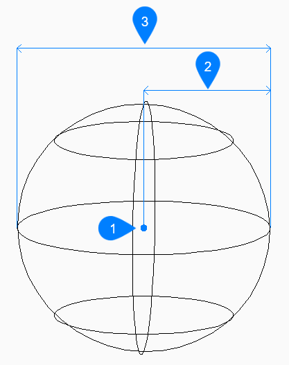 球体の3Dソリッドを作成します。中心、半径、直径などのオプションを組み合わせて選択できます。