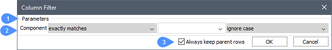 列フィルターダイアログボックスでは、列フィルターの設定を行います。