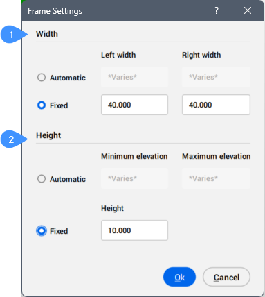 フレーム設定ダイアログボックスでは、横断ビューのフレームの大きさを調整することができます。