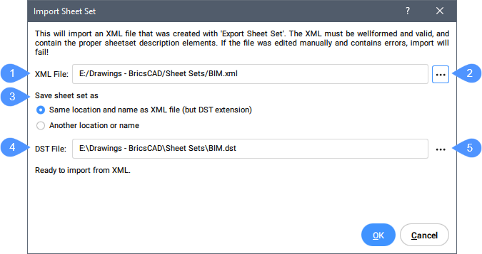 シートセットに名前を付けて保存ダイアログボックスが開きます。このボタンは、読み込み済みのXMLファイル以外の場所や名前でシートセットを保存する場合にのみアクティブになります。
