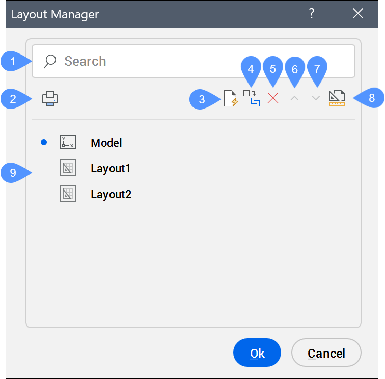 レイアウト名を検索し、検索されたレイアウトのみを表示します。これは、図面に多くのレイアウトが含まれている場合に便利です。
