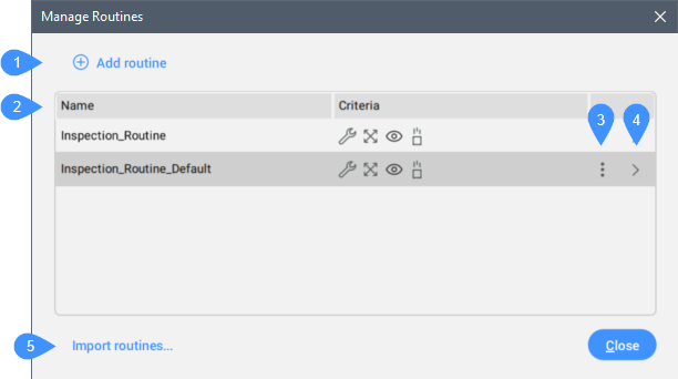 ルーチンの管理ダイアログボックスでは、BMASSEMBLYINSPECTコマンドのルーチンを管理できます。