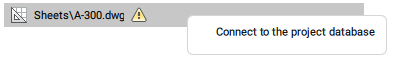 • プロジェクトデータベースにまだ接続されていない図面には、黄色の三角形が表示されます。接続するには、図面を右クリックしてプロジェクトデータベースに接続を選択します。