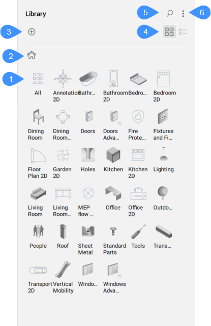 ライブラリパネルから、2Dおよび3Dのブロックライブラリにアクセスすることができます。