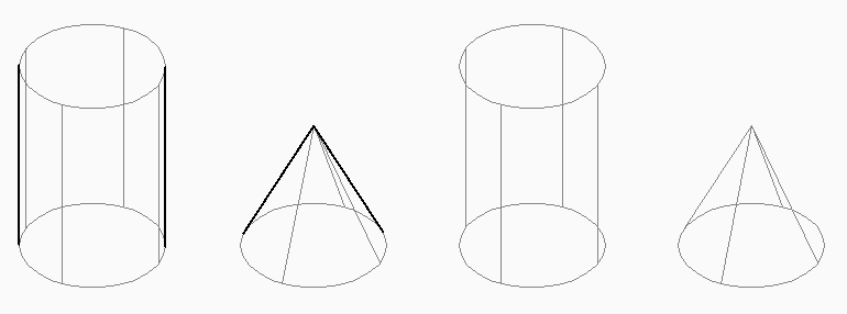 ワイヤフレームモード(2Dおよび3D)でソリッド図形のシルエットカーブを表示します。