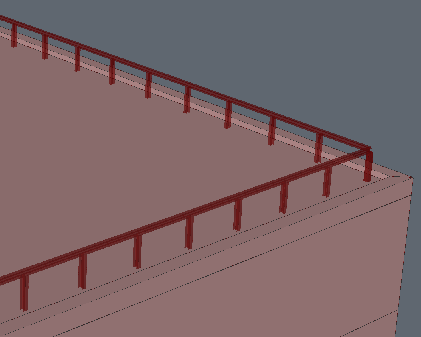 - Udało ci się utworzyć balustradę na szczycie budynku. (Pełny skrypt do tego celu znajduje się w pliku End_2 .ghx na dole tej strony, który jest połączony z End_2.dwg).