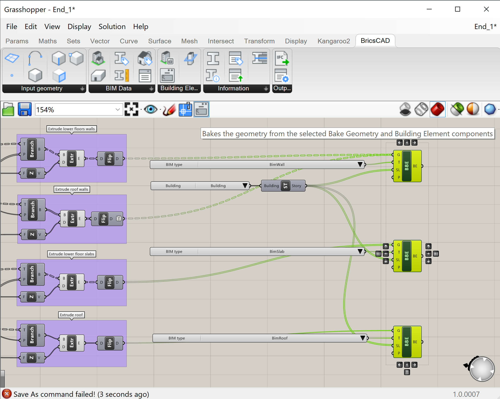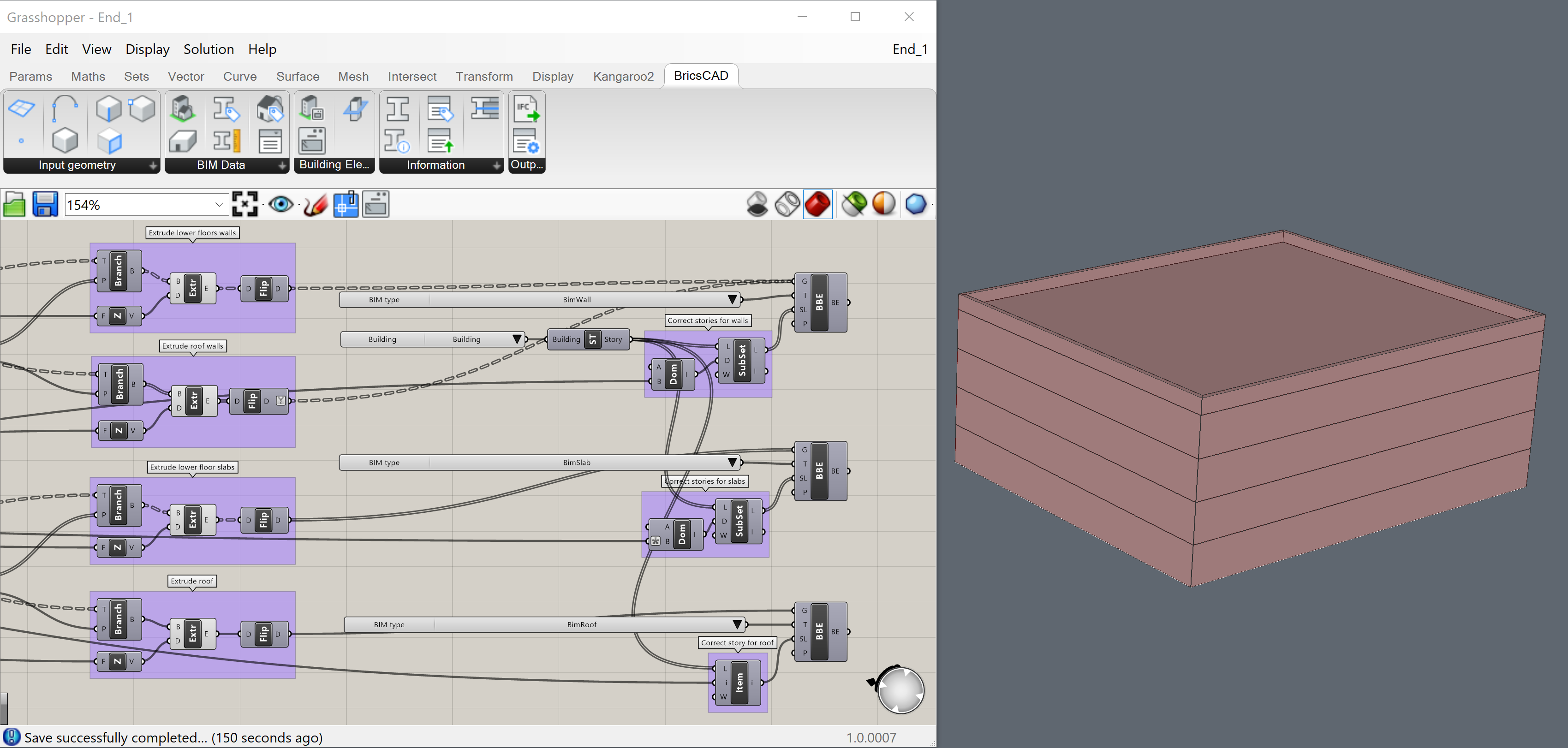 - Wynikowy skrypt: 'End_3.ghx' można znaleźć w pliku zip znajdującym się na dole tej strony. Działa z plikiem 'End_3.dwg' w którym nic nie jest jeszcze zrobione. Wykonaj wszystkie Elementy Budynku, aby uzyskać ustawienia po wykonaniu.