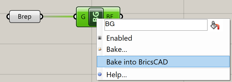 - Kliknij prawym przyciskiem myszy na komponent Bake Geometry i wybierz Bake into BricsCAD.