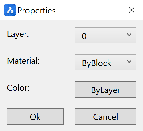 Zostanie wyświetlone następujące okno dialogowe. Tutaj możesz wybrać docelową warstwę, materiał i kolor: