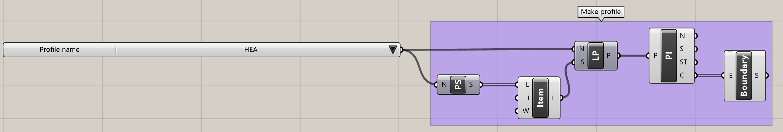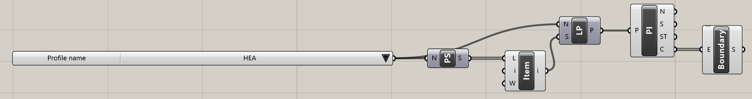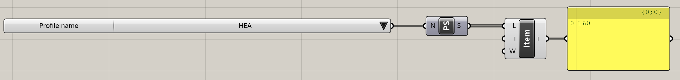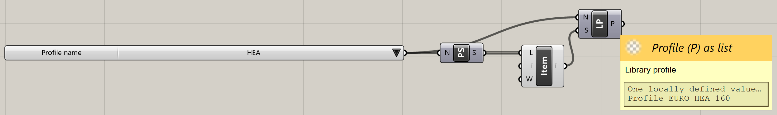 Połącz Profile Names i List Item komponentów z , aby uzyskać profil HEA 160 jako dane wyjściowe.