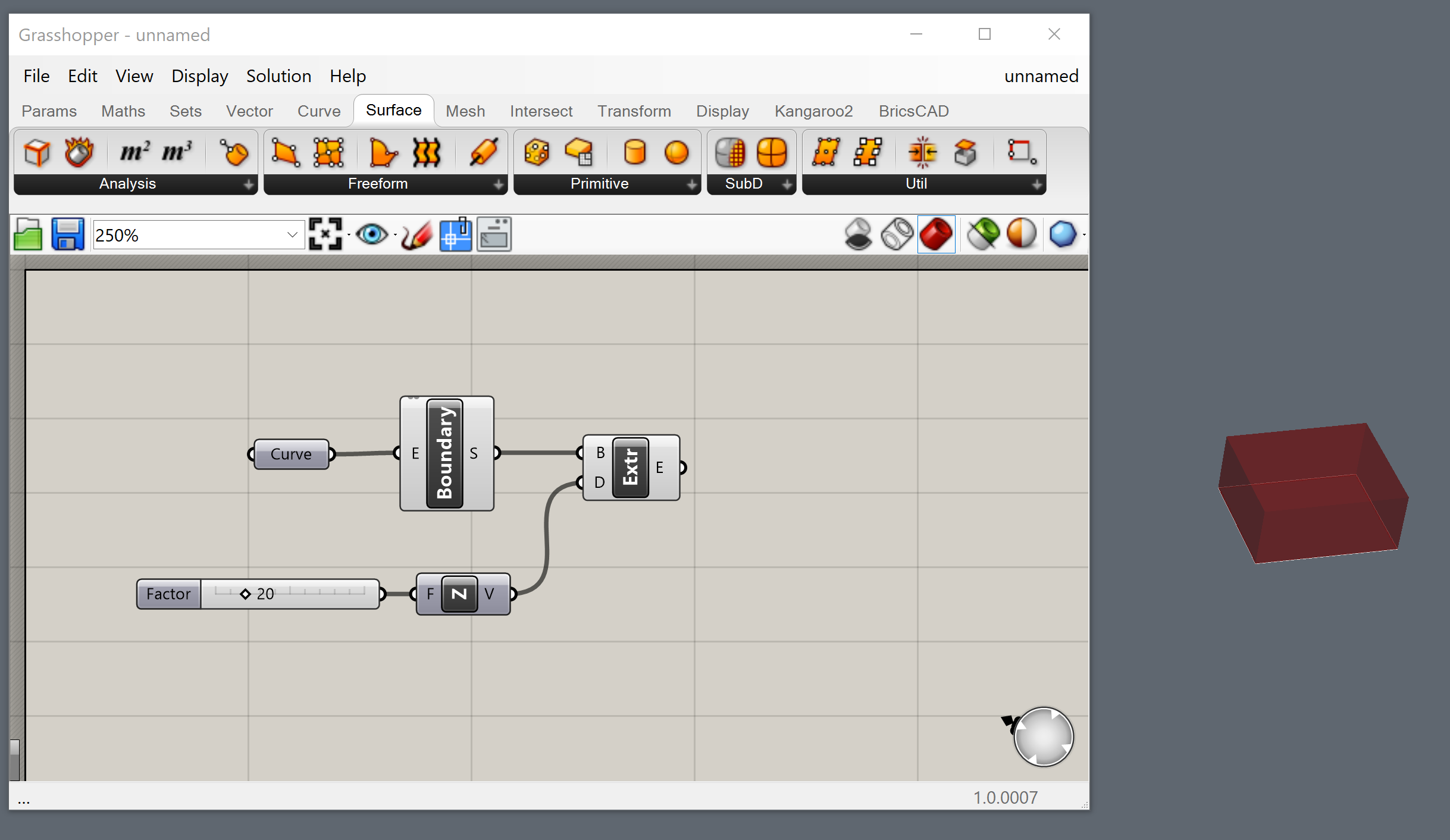 - Teraz narysowałeś pudełko w Grasshopperze, używając geometrii BricsCAD jako danych wejściowych.