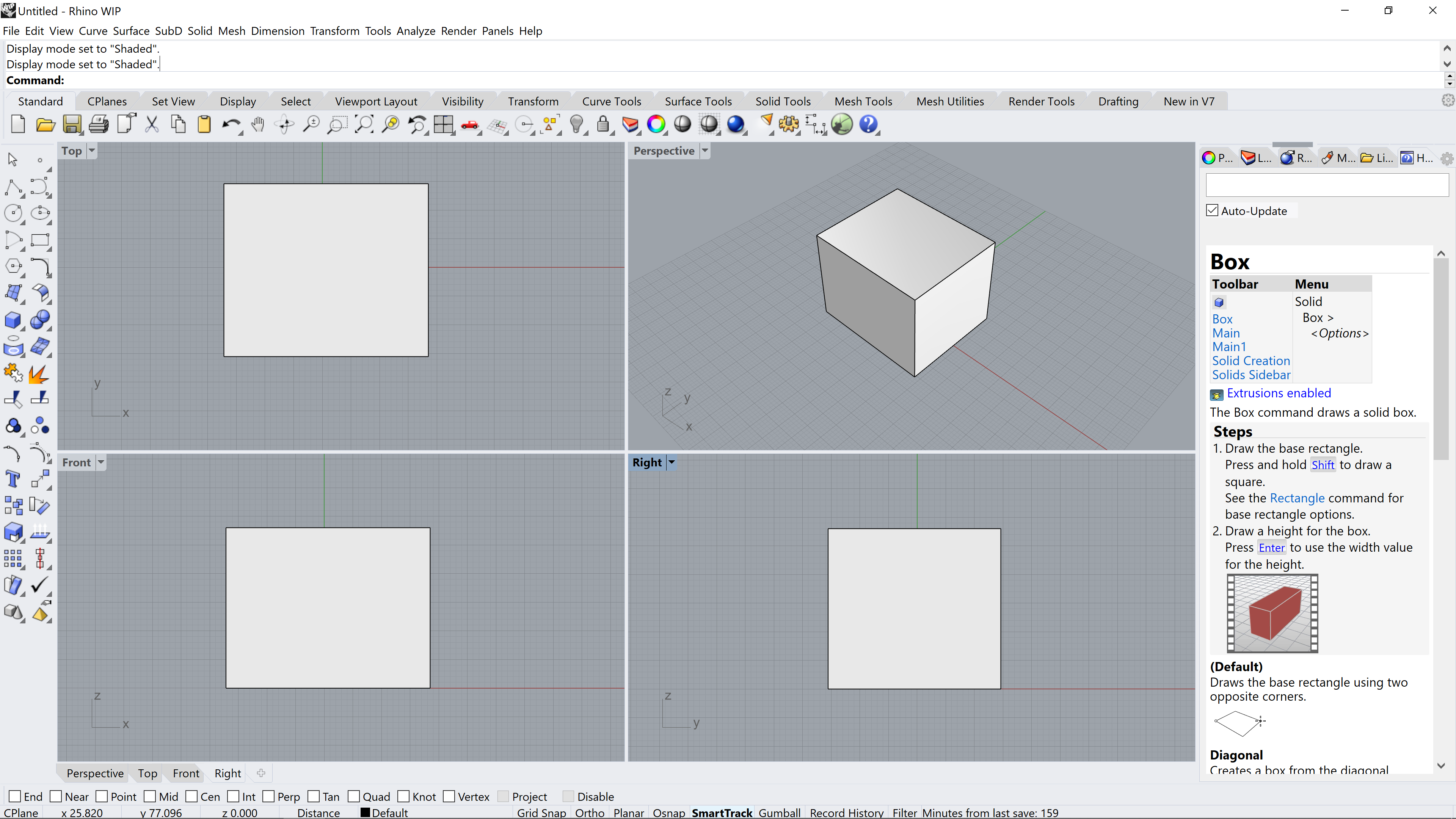 - Przejdź do obszaru roboczego Rhino i wybierz swoją kostkę.