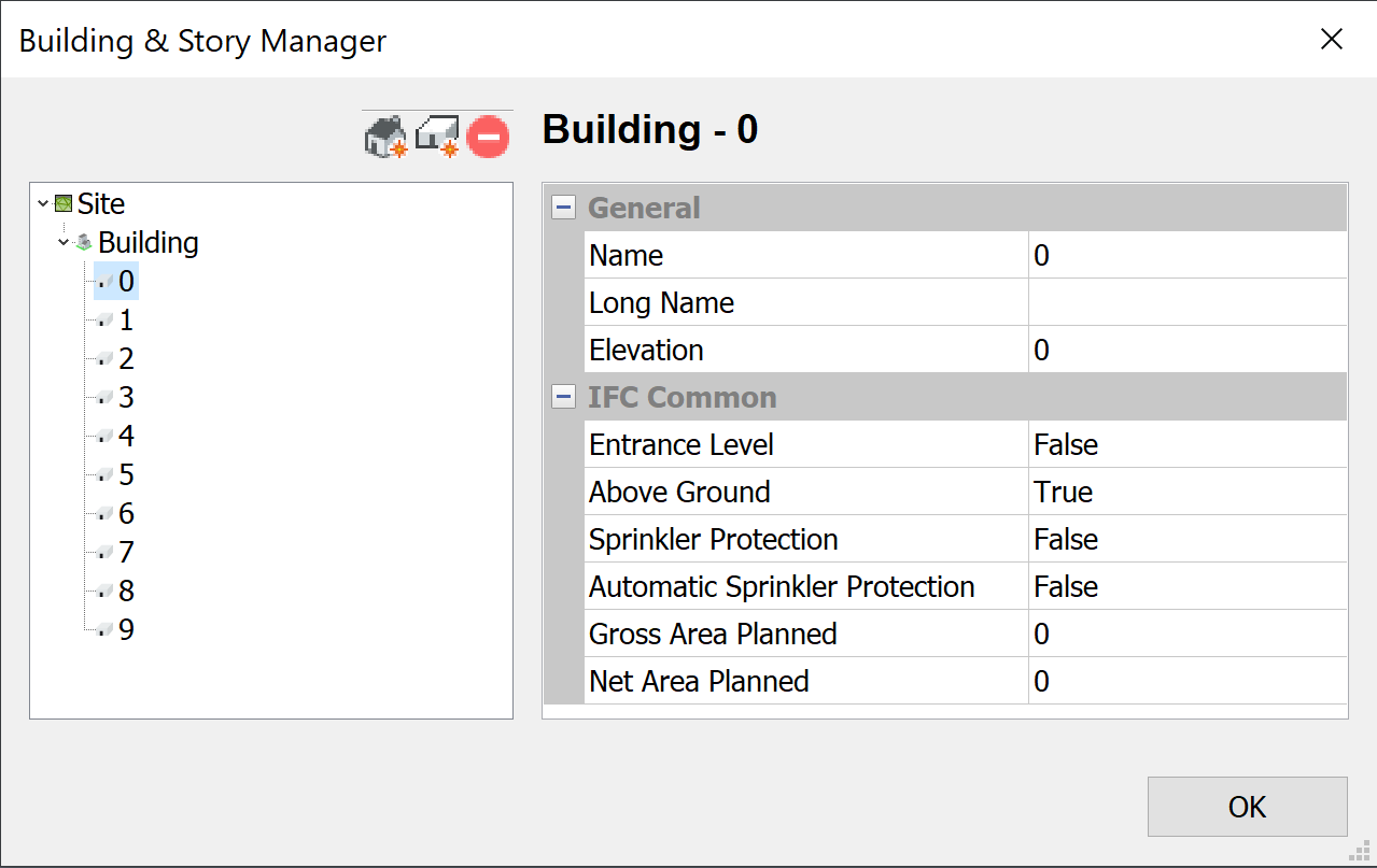 - Dodaj budynek i kilka pięter (więcej pięter niż chcesz podzielić na budynki).