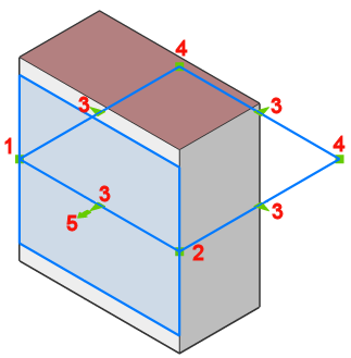 ) = Punkt przelotowy: ponownie definiuje punkt przelotowy płaszczyzny przekroju.Obwiednia płaszczyzny przekroju jest rozciągana i obracana wokół punktu początkowego (1).