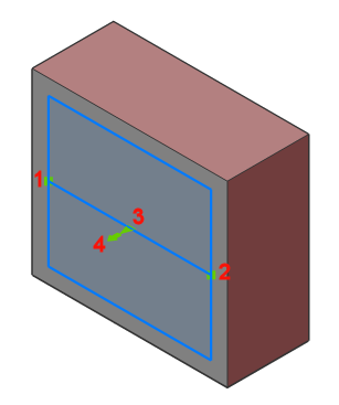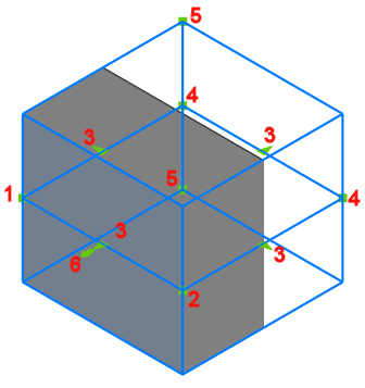 ) = Punkt przelotowy: ponownie definiuje punkt przelotowy płaszczyzny przekroju.Objętość płaszczyzny przekroju jest rozciągana i obracana wokół punktu początkowego (1).