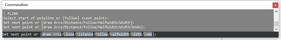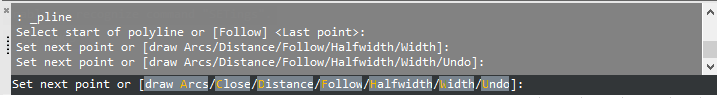 - Gdy wiersz poleceń jest zamknięty, opcje poleceń i dane wprowadzane z klawiatury są tymczasowo wyświetlane w obszarze rysowania.