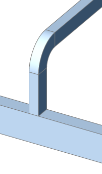 Uwaga: W przypadku wybrania więcej niż 2 segmentów przepływu osie wybranych segmentów muszą być współpłaszczyznowe. Po wybraniu wielu segmentów współpłaszczyznowych tworzone są połączenia. Po wybraniu dwóch brył niewspółpłaszczyznowych wprowadzany jest dodatkowy element łączący.