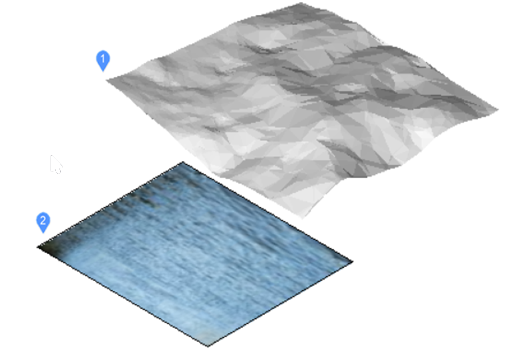 Wybierz powierzchnię TIN (1) i wybierz dołączony obraz rastrowy (2), aby przypisać go do powierzchni.