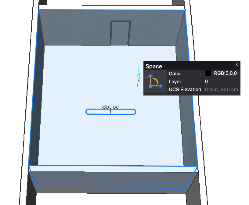 - Mova o cursor dentro da área do espaço para escolher um ponto, a configuração UCS Dinâmico permite definir o plano inferior do espaço. Uma marca de seleção em verde vai aparecer ao lado do cursor para indicar uma possível localização. Uma cruz vermelha vai aparecer se o plano não estiver disponível.