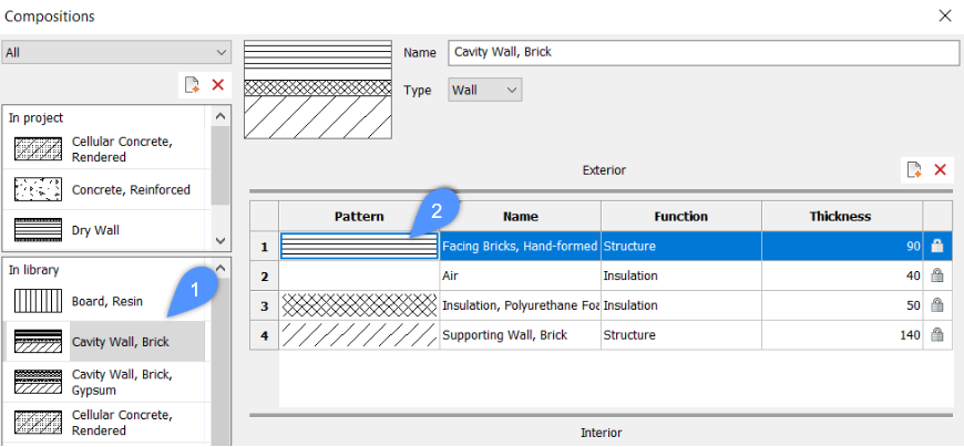 - Clique na composição e clique-duplo no padrão da composição, para abrir a caixa de diálogo dos Materiais Físicos (2).