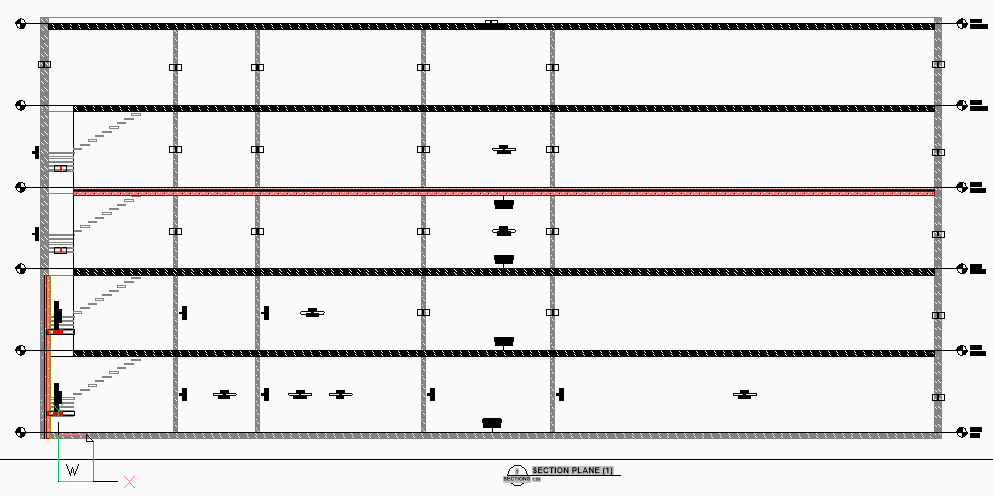 Indicadores de corte são fornecidos para qualquer corte que intercepte com o original, se o corte original for uma planta. Estes são armazenados na camada dedicada BIM_SECTIONS. Ative ou Desative a camada para gerenciar a visibilidade dos indicadores.