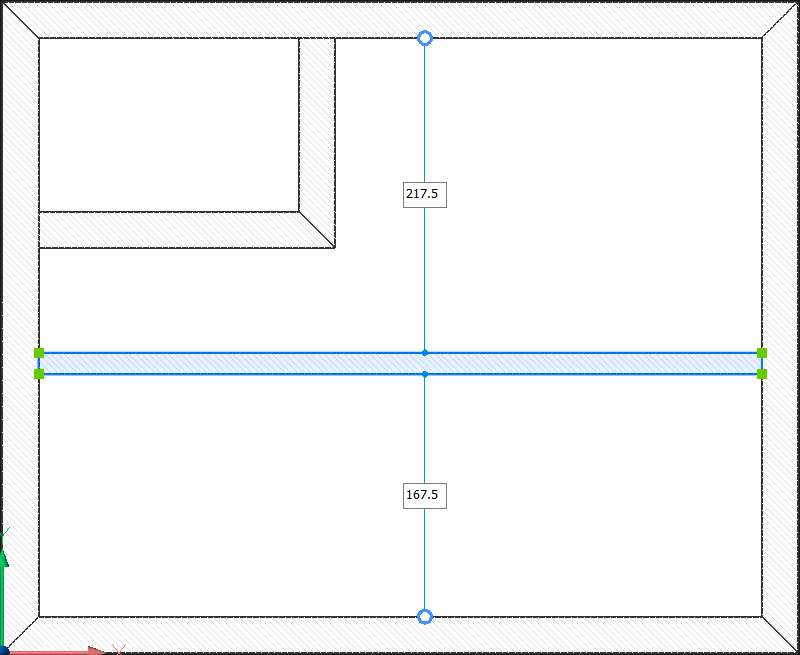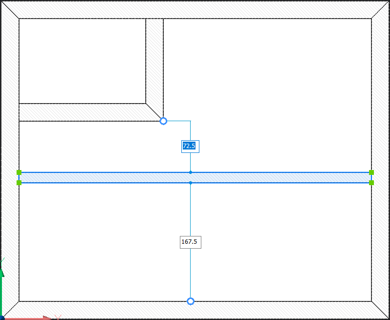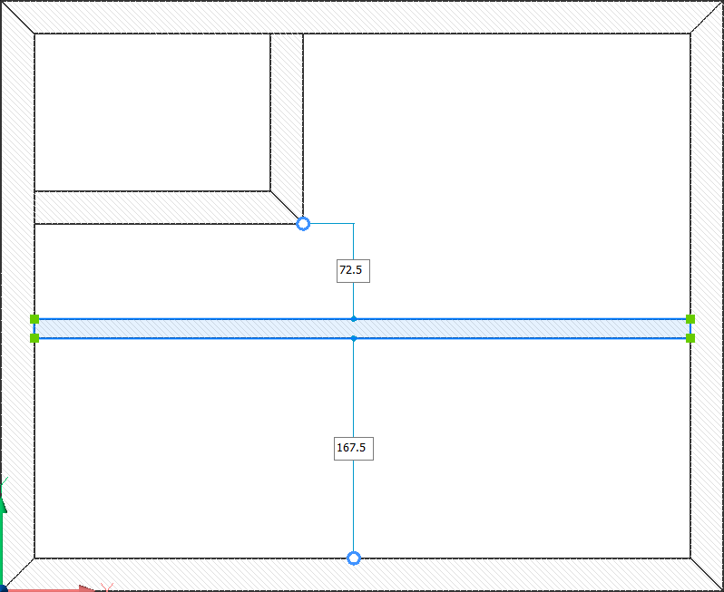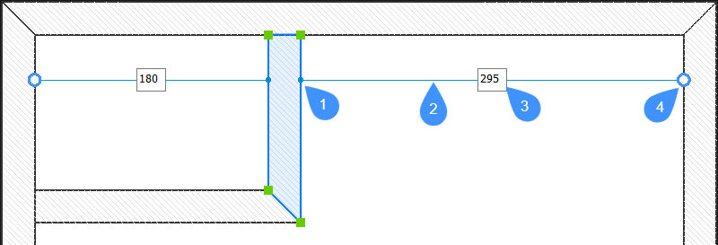 A Seleção de dimensões fornece uma interface para reposicionar facilmente um elemento BIM existente (parede, coluna, janela ou porta) especificando as distâncias a partir do elemento selecionado para os pontos de referência.