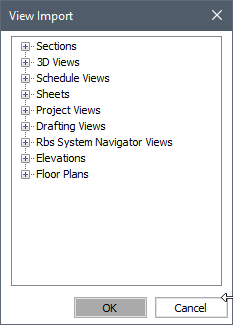 Selecione uma vista na caixa de diálogo Importar Vista e os elementos serão importados com base nas configurações de Substituições de Visibilidade ou Gráficas das vistas em Revit®. As vistas são estruturadas com base em seus Tipos de Vista.