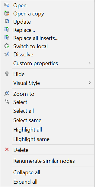 - Selecione um componente inserido e clique o botão-direito para abrir o menu de contexto: